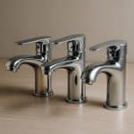 Следующий шаг – установка смесителя на раковину. Его крепление к чаше в зависимости от конструкции осуществляется при помощи шпилек или широкой гайки. Гибкие шланги должны иметь достаточную длину, чтобы доставать до концевых фитингов на водопроводных трубах.