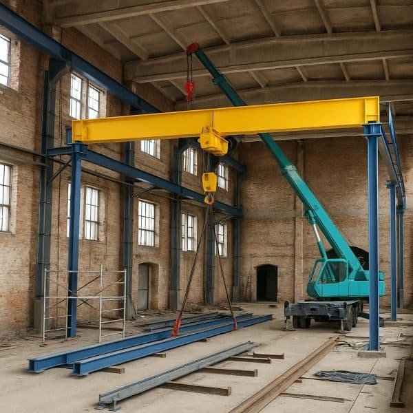 Многие промышленные здания, построенные в 1960–1980-х годах, изначально не проектировались под использование мостовых кранов. Их основная задача заключалась в размещении оборудования лёгкого или среднего класса. Сегодня такие помещения часто используются для новых производств, требующих перемещения массивных деталей, форм, заготовок и сборочных узлов.