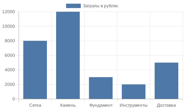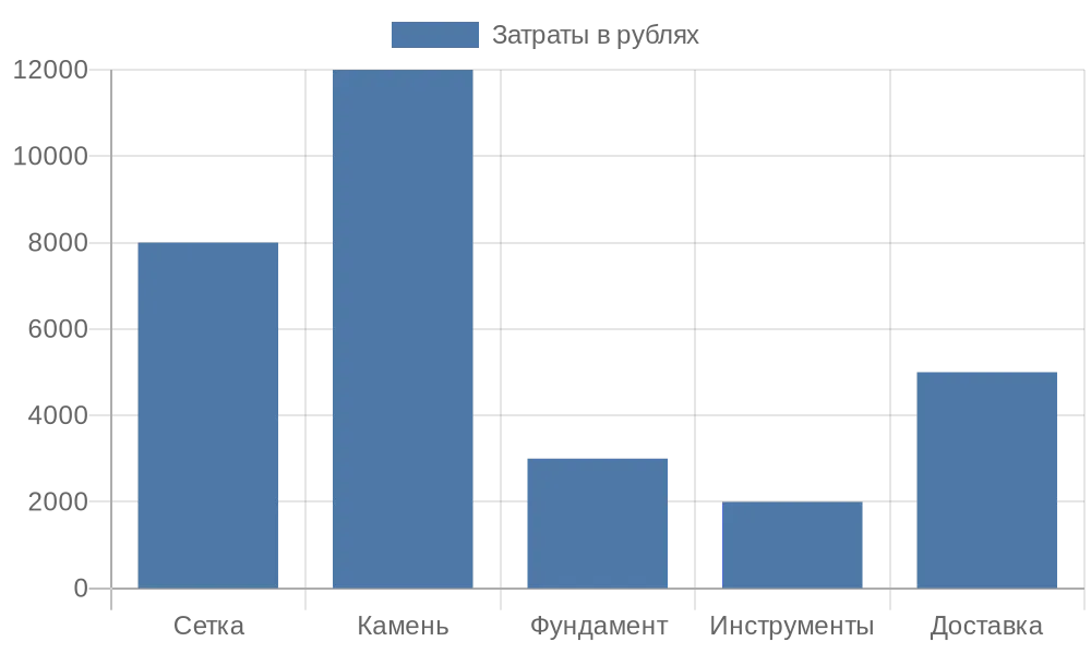 Из диаграммы видно, что камень занимает основную долю, но его можно сэкономить, выбирая местные поставки. Это решает возражение о дороговизне проекта, подтвержденное отзывами дачников из Краснодарского края, где самостоятельный расчет снизил расходы на 15%.